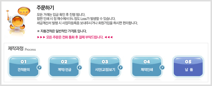 ※ 품목, 재질, 규격(가로*세로), 수량, 모양(재단/칼선모양), 색상(칼라/일반), 코팅/비코팅 등 적어 주세요
